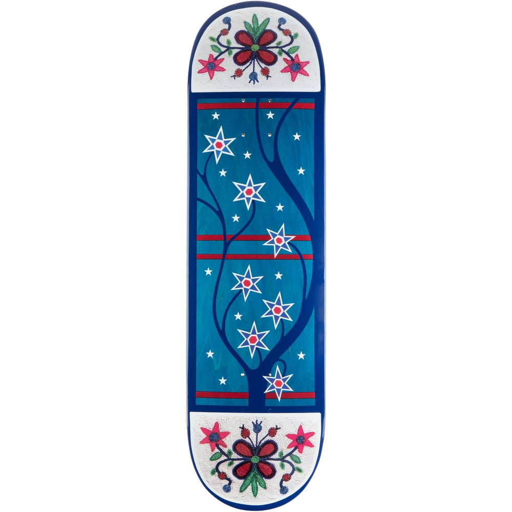 In this new series, Colonialism Skateboards has collaborated with artist and author, Christi Belcourt to release three new boards under the theme “Sky, Land & Water”. Designed by Christi Belcourt.